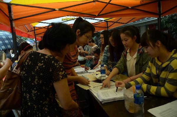 (通讯员:索加子)2013年9月6日上午七点,夹杂着细细的小雨,我系迎接13级新生工作有条不紊地展开。在系党总支和辅导员的指导下,员工会志愿者按照迎新报到的程序依次为新生办理报到注册手续。直至下午四点半左右,13级171位新生均已完成开学报到注册。